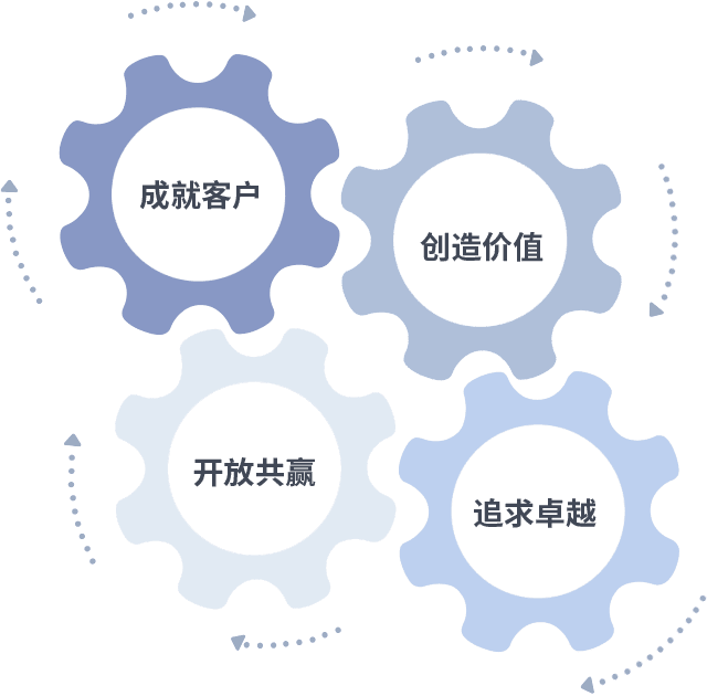 成就客户是一切决策的出发点,,,,创造价值是衡量所有工作的标准,,,追求卓越是J9九游会做事做人的态度,,,,开放共赢是J9九游会的格局也是最终的结果。。。。价值观的齿轮环环相扣,,推动着组织里的每个人不断向前。。